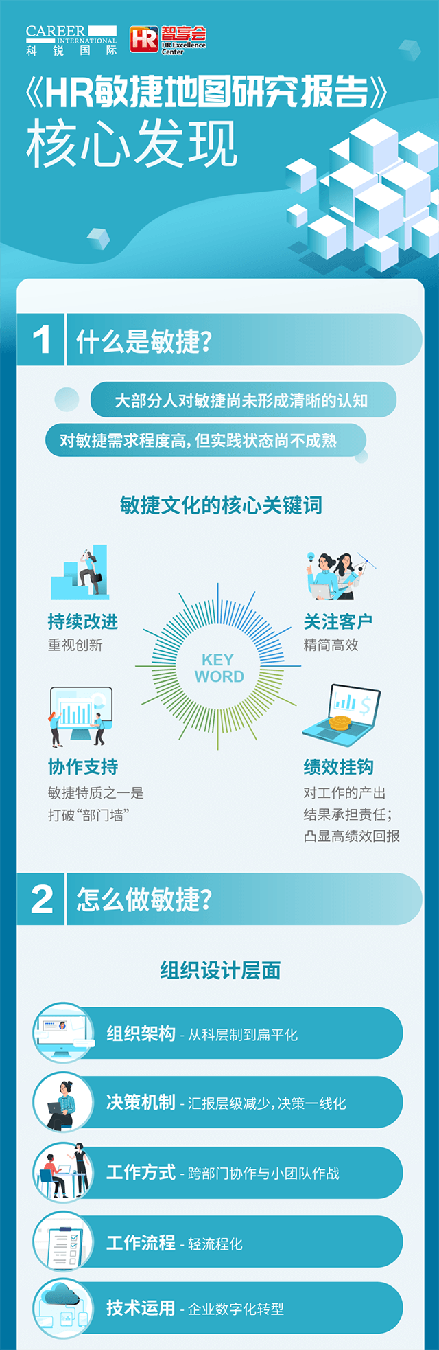 对于组织而言,有哪些工作方式、要素帮助组织敏捷起来?为了更好地助力组织的敏捷,人力资源团队做了哪些调整?为了探究以上问题,九州ku游官网国际人力资源公司联合智享会发起了“HR 敏捷地图”调研研究。问卷调研了三百余家企业,分析现在企业对“敏捷”概念的认知,和组织敏捷的现状。顺利获得深度采访十余位大型企业的人力资源一把手,探究组织敏捷实践场景以及人力资源在其中的助力之处,以及为了更好地助力组织敏捷人力资源团队自身在架构、能力等方面的调整。